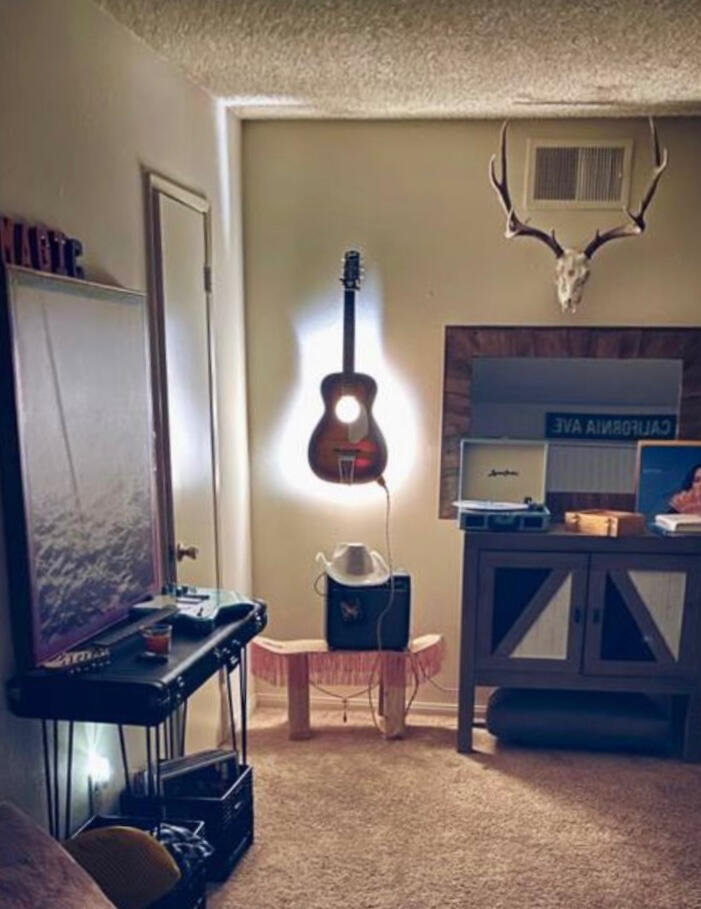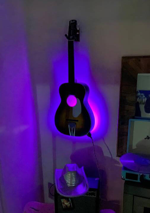 My Daddy Makes Art® Illuminated Guitar | ‘The 001’ | SOLDPlug in. Light up. Feel Everything. This is Daddy’s version of therapy.This vintage Fender acoustic has been carefully disassembled and lovingly restored. It plays. It sings. It glows with the dangerous beauty your dealer warned you about. This isn’t decor | it’s a frequency shift for your inner landscape.Warning: Exposure May Cause Nostalgia and Ultra Pleasure.